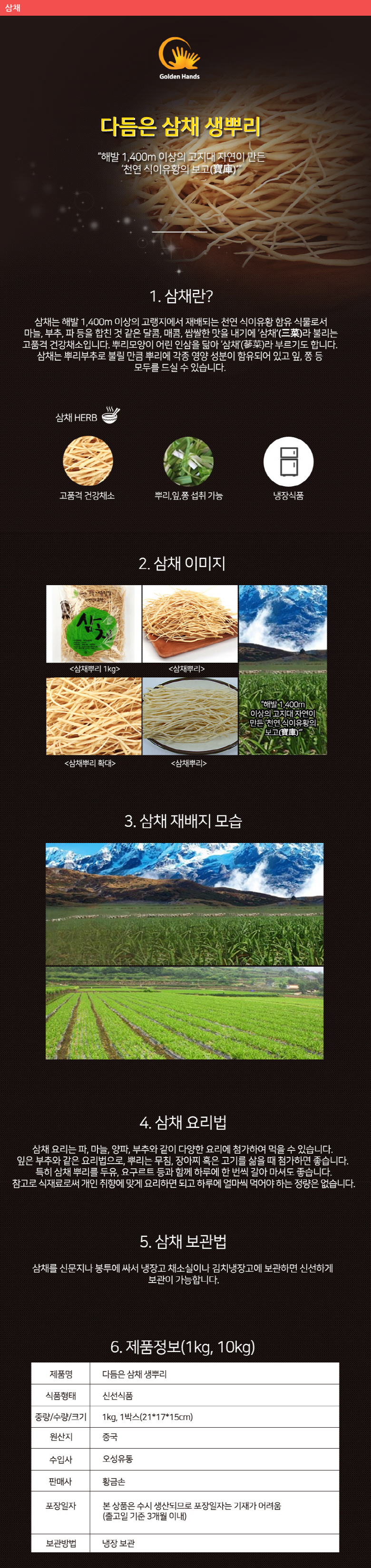 [Golden Hands] Trimmed Raw Samchae Roots 1kg / 10kg